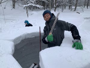 設計図づくり、雪ブロックの切り出し、積み上げ、仕上げ…
